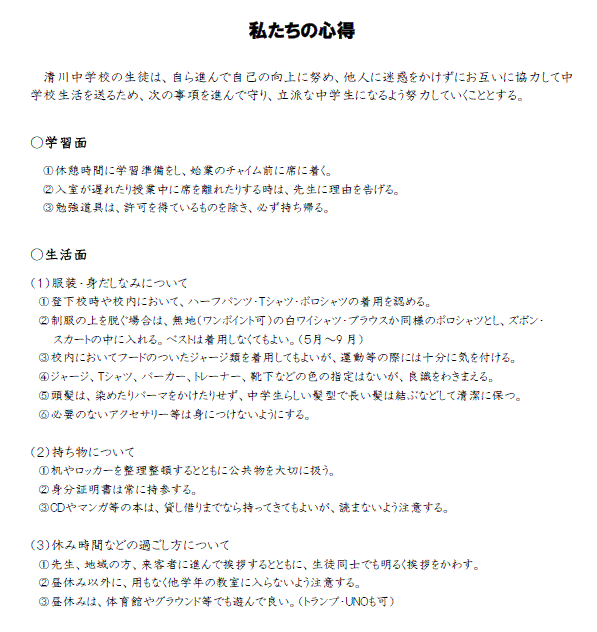 学校規則・私たちの心得